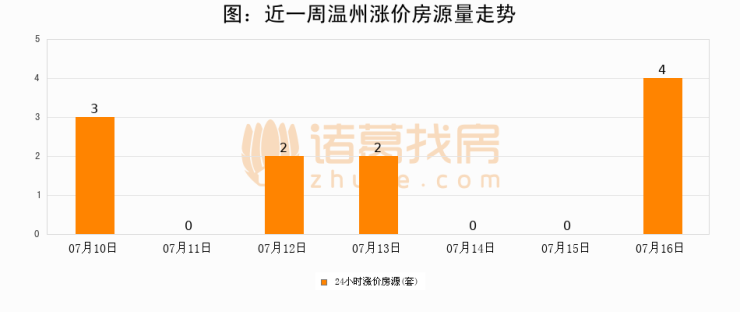 根据诸葛找房数据显示,温州24小时涨价房源量为4套,较07月15日增加4套,环比上涨0%。与此同时,涨价房源占比小幅扩大,业主信心有所提升。