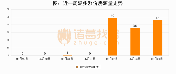 根据诸葛找房数据显示,温州24小时涨价房源量为46套,较06月03日增加10套,环比上涨27.8%。与此同时,涨价房源占比小幅扩大,业主信心有所提升。