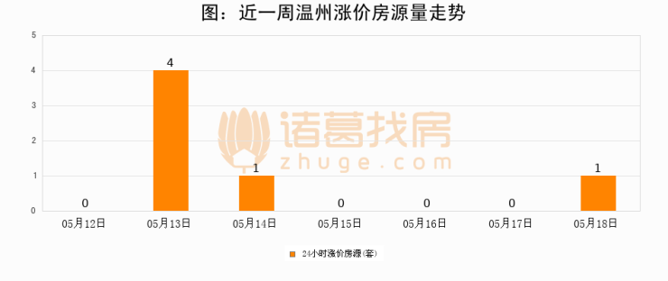 根据诸葛找房数据显示,温州24小时涨价房源量为1套,较05月17日增加1套,环比上涨0%。与此同时,涨价房源占比小幅扩大,业主信心有所提升。