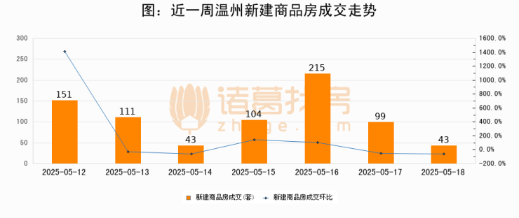 【温州成交日报】05月18日新房成交43套;涨价房源1套