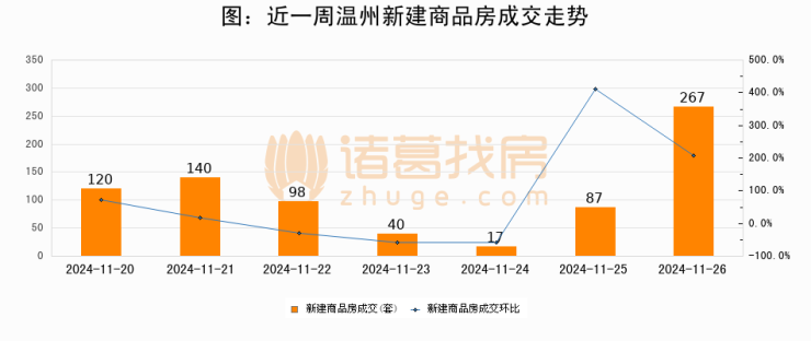 【温州成交日报】11月26日新房成交267套;涨价房源10套