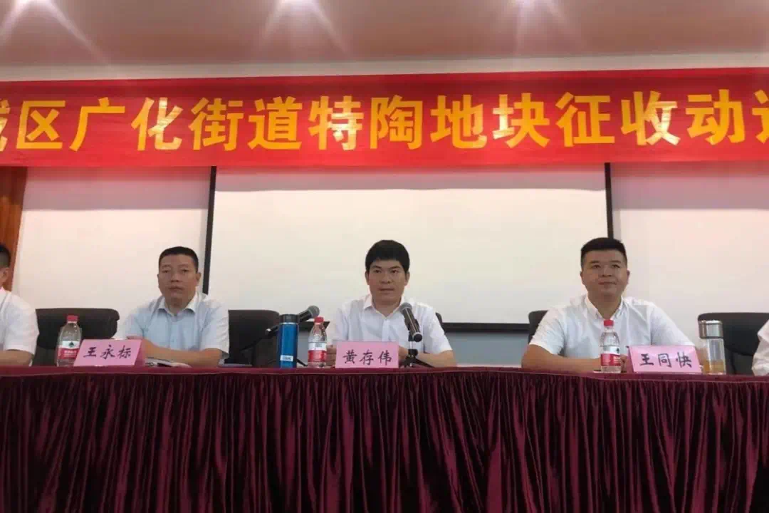 6月5日上午,广化街道特陶地块征收动迁大会召开,全面吹响特陶地块改造工作的冲锋号。街道党工委书记黄存伟出席会议并讲话,街道党工委副书记、办事处主任王同快主持会议,街道全体班子成员、特陶地块改造现场办全体成员、基层站所负责人、被征收人代表、中介代理公司工作人员参加会议。