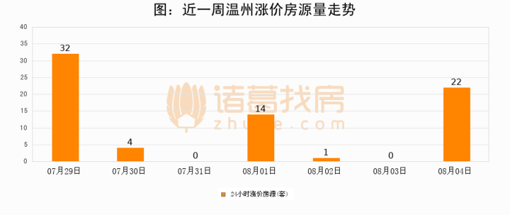 根据诸葛找房数据显示,温州24小时涨价房源量为22套,较08月03日增加22套,环比上涨0%。与此同时,涨价房源占比小幅扩大,业主信心有所提升。