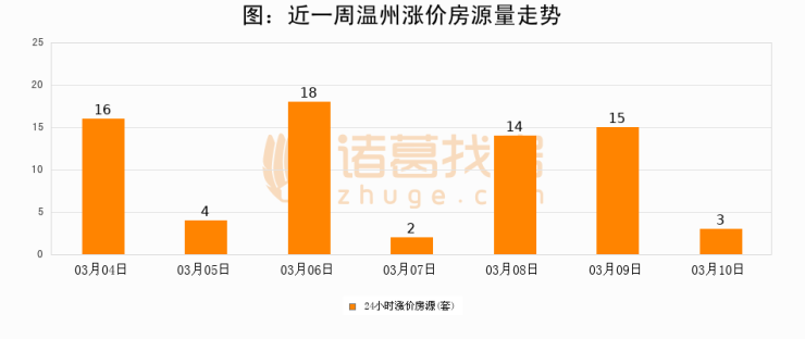 根据诸葛找房数据显示,温州24小时涨价房源量为3套,较03月09日减少12套,环比下降80%。与此同时,涨价房源占比小幅回落,对于购房者来说是一个入市窗口期,购房者可抓住时机入市。