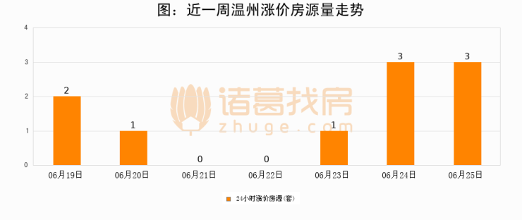 根据诸葛找房数据显示,温州24小时涨价房源量为3套,较06月24日持平。