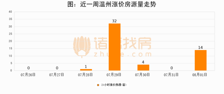 根据诸葛找房数据显示,温州24小时涨价房源量为14套,较07月31日增加14套,环比上涨0%。与此同时,涨价房源占比小幅扩大,业主信心有所提升。