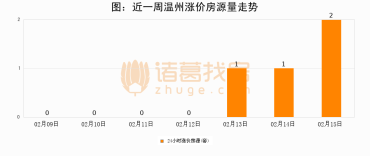 根据诸葛找房数据显示,温州24小时涨价房源量为2套,较02月14日增加1套,环比上涨100%。与此同时,涨价房源占比小幅扩大,业主信心有所提升。