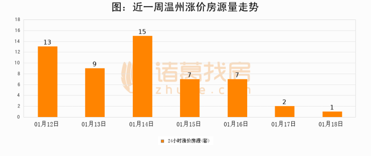 根据诸葛找房数据显示,温州24小时涨价房源量为1套,较01月17日减少1套,环比下降50%。与此同时,涨价房源占比小幅回落,对于购房者来说是一个入市窗口期,购房者可抓住时机入市。