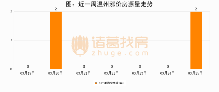 根据诸葛找房数据显示,温州24小时涨价房源量为2套,较03月24日增加2套,环比上涨0%。与此同时,涨价房源占比小幅扩大,业主信心有所提升。