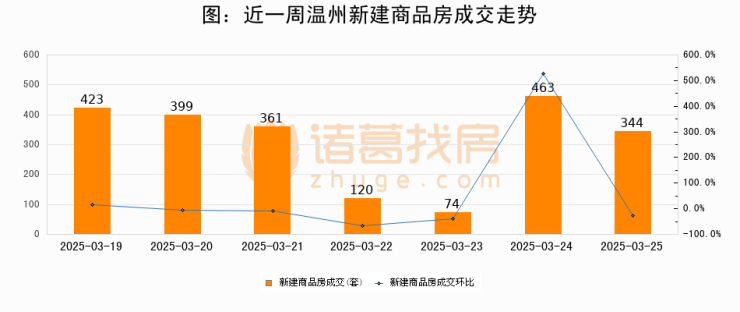 【温州成交日报】03月25日新房成交344套;涨价房源2套