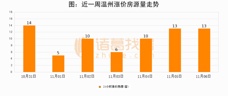 根据诸葛找房数据显示,温州24小时涨价房源量为13套,较11月05日持平。