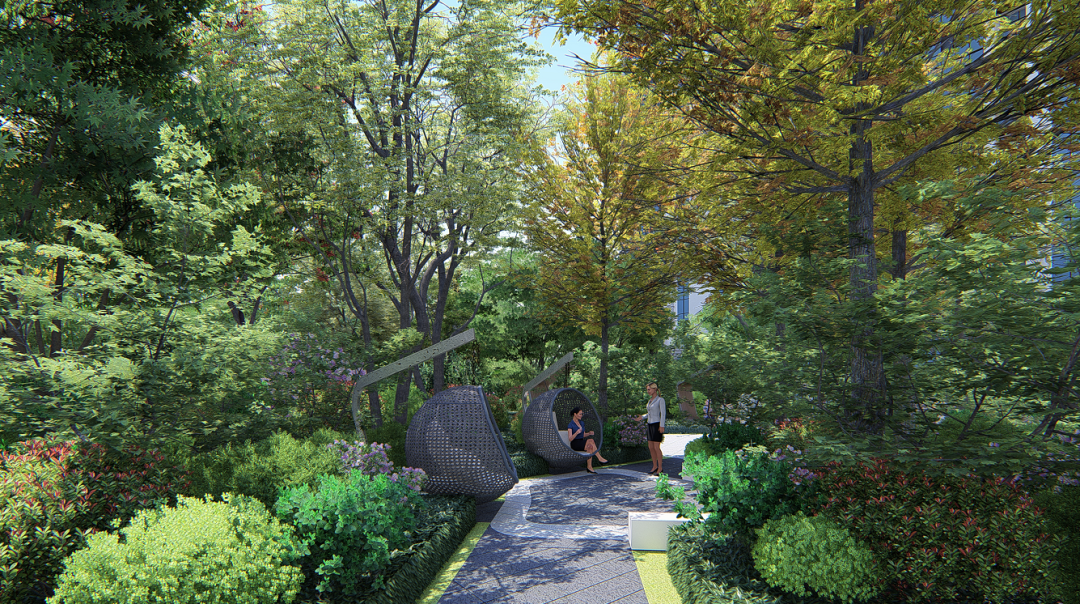 除此之外,在5#、6#楼下方,香开万里还为业主们专门设计了一处“幽林谷地”人文主题公园,层次感的绿植和堆坡形成若干个半隐秘空间,无论是1-2人的私密约会,还是3-4人的幽静小聚,在这里都非常合适。加上约70米的超阔楼间距,产品整体的格局气度已经呼之欲出。