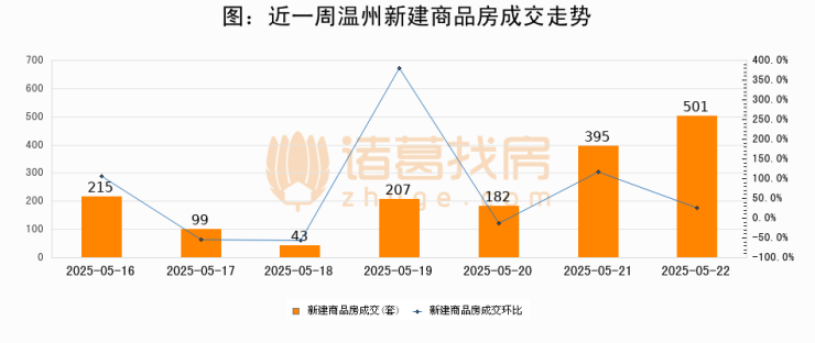 【温州成交日报】05月22日新房成交501套;涨价房源1套