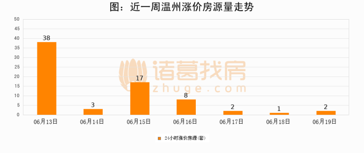 根据诸葛找房数据显示,温州24小时涨价房源量为2套,较06月18日增加1套,环比上涨100%。与此同时,涨价房源占比小幅扩大,业主信心有所提升。