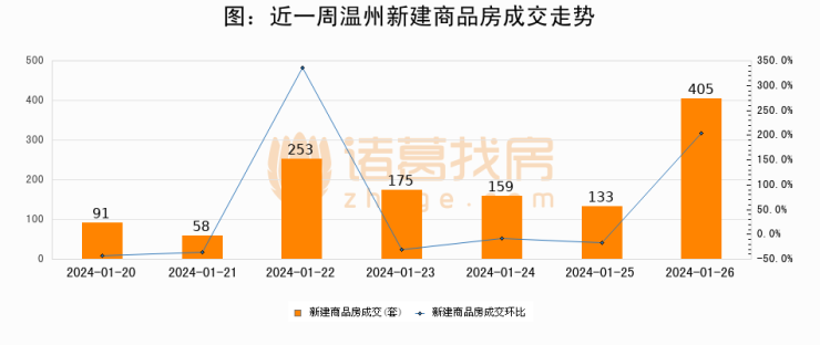 【温州成交日报】01月26日新房成交405套;涨价房源9套
