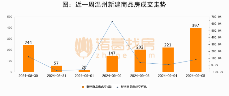 【温州成交日报】09月05日新房成交397套;涨价房源1套