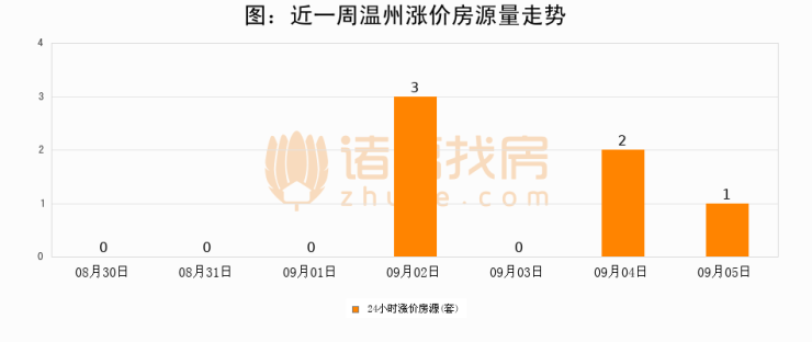 根据诸葛找房数据显示,温州24小时涨价房源量为1套,较09月04日减少1套,环比下降50%。与此同时,涨价房源占比小幅回落,对于购房者来说是一个入市窗口期,购房者可抓住时机入市。