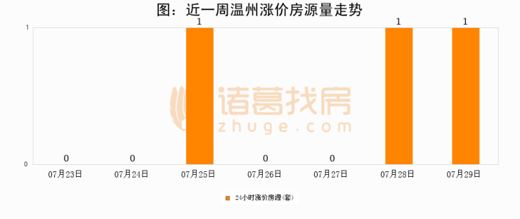 根据诸葛找房数据显示,温州24小时涨价房源量为1套,较07月28日持平。