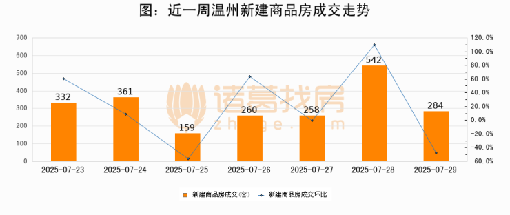 【温州成交日报】07月29日新房成交284套;涨价房源1套