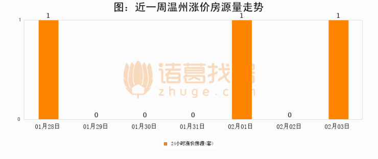 根据诸葛找房数据显示,温州24小时涨价房源量为1套,较02月02日增加1套,环比上涨0%。与此同时,涨价房源占比小幅扩大,业主信心有所提升。