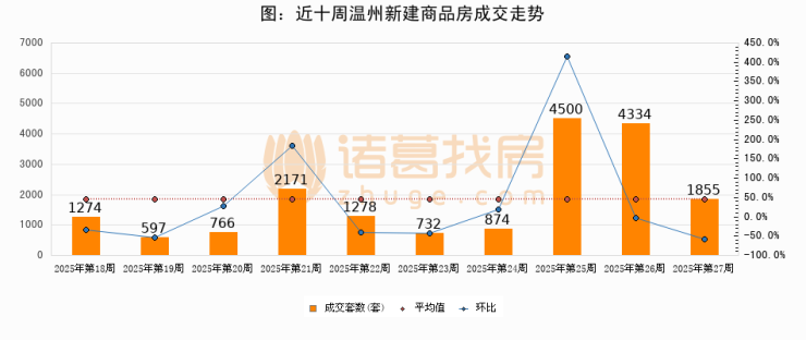 【温州成交周报】第27周新房成交1855套,涨价房源6套