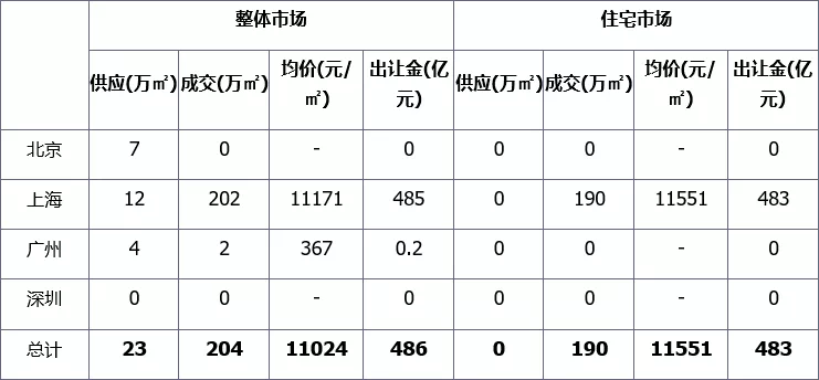 整体供应量降逾九成,成交及均价环比显增,土地出让金显增,上海收金逾485亿领衔。