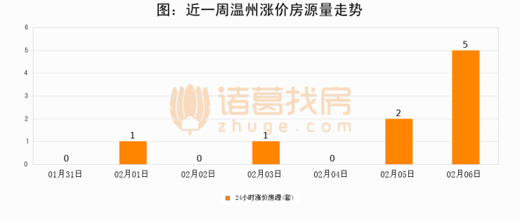 根据诸葛找房数据显示,温州24小时涨价房源量为5套,较02月05日增加3套,环比上涨150%。与此同时,涨价房源占比小幅扩大,业主信心有所提升。