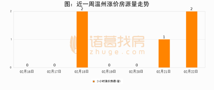 根据诸葛找房数据显示,温州24小时涨价房源量为2套,较02月21日增加1套,环比上涨100%。与此同时,涨价房源占比小幅扩大,业主信心有所提升。