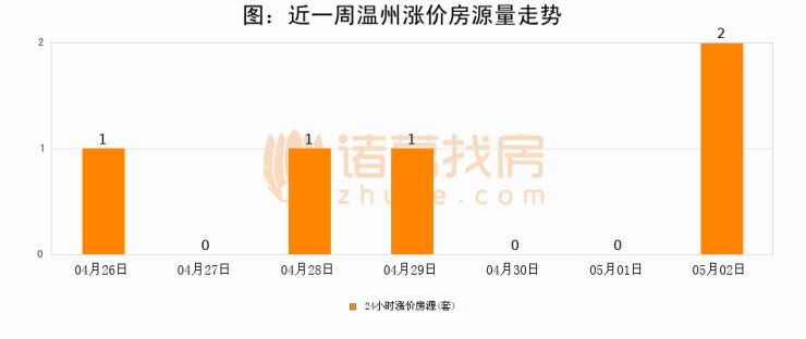 根据诸葛找房数据显示,温州24小时涨价房源量为2套,较05月01日增加2套,环比上涨0%。与此同时,涨价房源占比小幅扩大,业主信心有所提升。