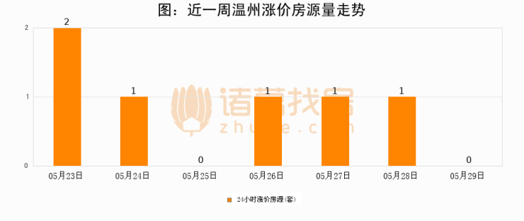 根据诸葛找房数据显示,温州24小时涨价房源量为0套,较05月28日减少1套,环比下降100%。与此同时,涨价房源占比小幅回落,对于购房者来说是一个入市窗口期,购房者可抓住时机入市。