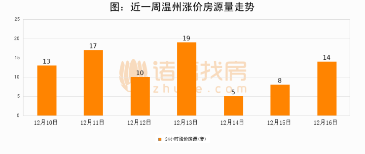根据诸葛找房数据显示,温州24小时涨价房源量为14套,较12月15日增加6套,环比上涨75%。与此同时,涨价房源占比小幅扩大,业主信心有所提升。