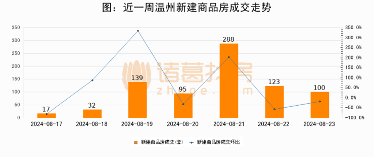 【温州成交日报】08月23日新房成交100套;涨价房源2套