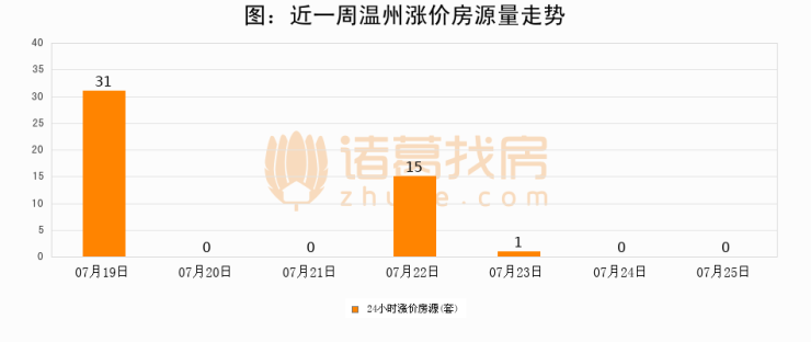 根据诸葛找房数据显示,温州24小时涨价房源量为0套,较07月24日持平。