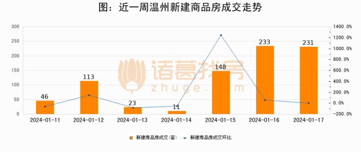 【温州成交日报】01月17日新房成交231套;涨价房源14套