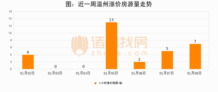 根据诸葛找房数据显示,温州24小时涨价房源量为7套,较01月07日增加2套,环比上涨40%。与此同时,涨价房源占比小幅扩大,业主信心有所提升。