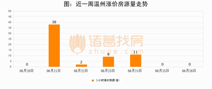 根据诸葛找房数据显示,温州24小时涨价房源量为0套,较06月25日持平。