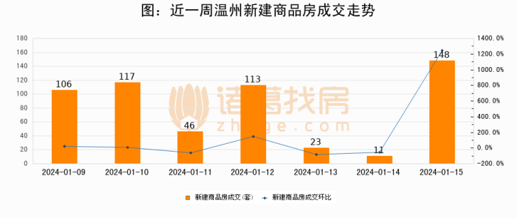 【温州成交日报】01月15日新房成交148套;涨价房源6套