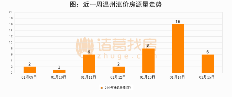根据诸葛找房数据显示,温州24小时涨价房源量为6套,较01月14日减少10套,环比下降62.5%。与此同时,涨价房源占比小幅回落,对于购房者来说是一个入市窗口期,购房者可抓住时机入市。