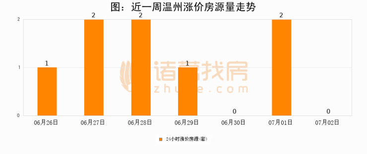 根据诸葛找房数据显示,温州24小时涨价房源量为0套,较07月01日减少2套,环比下降100%。与此同时,涨价房源占比小幅回落,对于购房者来说是一个入市窗口期,购房者可抓住时机入市。