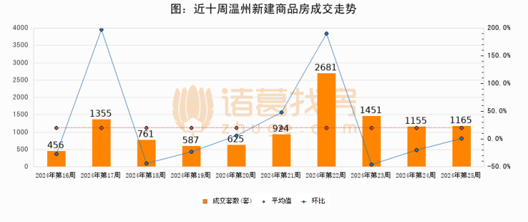 【温州成交周报】第25周新房成交1165套,涨价房源54套