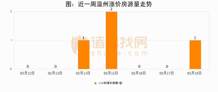 根据诸葛找房数据显示,温州24小时涨价房源量为1套,较03月17日增加1套,环比上涨0%。与此同时,涨价房源占比小幅扩大,业主信心有所提升。