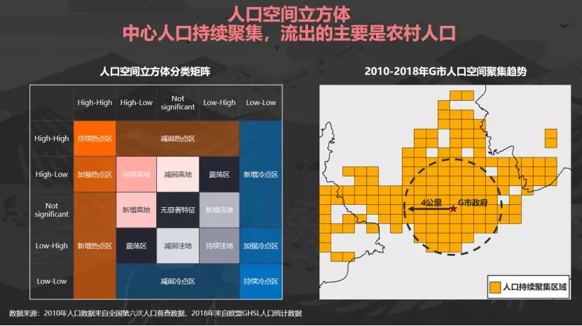 与此同时,从人口空间上看,城市中心人口聚集持续,流出的人口主要为农村人口,所以即使G城每年有大量人口流出,依然不影响城区房价的快速增长。