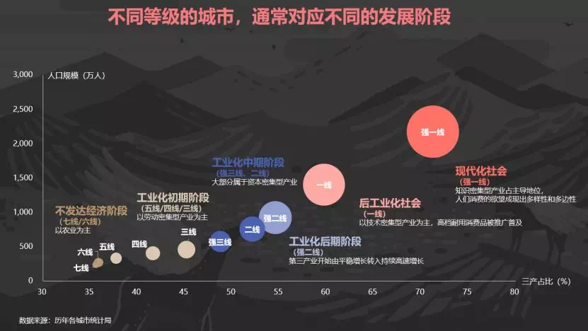 对应城市等级与城市发展阶段,通过数据量化评判出城市发展以及住宅需求的变化。