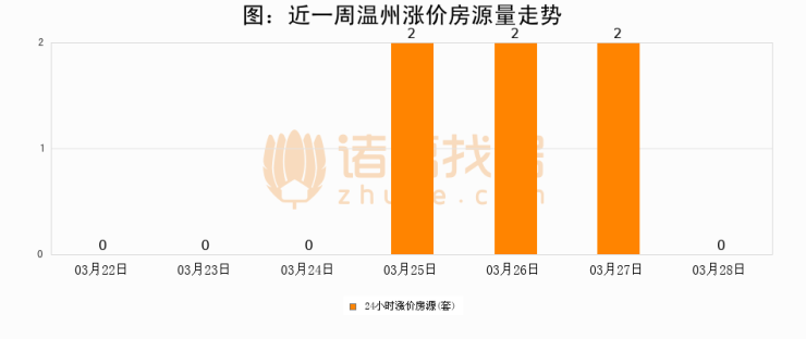 根据诸葛找房数据显示,温州24小时涨价房源量为0套,较03月27日减少2套,环比下降100%。与此同时,涨价房源占比小幅回落,对于购房者来说是一个入市窗口期,购房者可抓住时机入市。